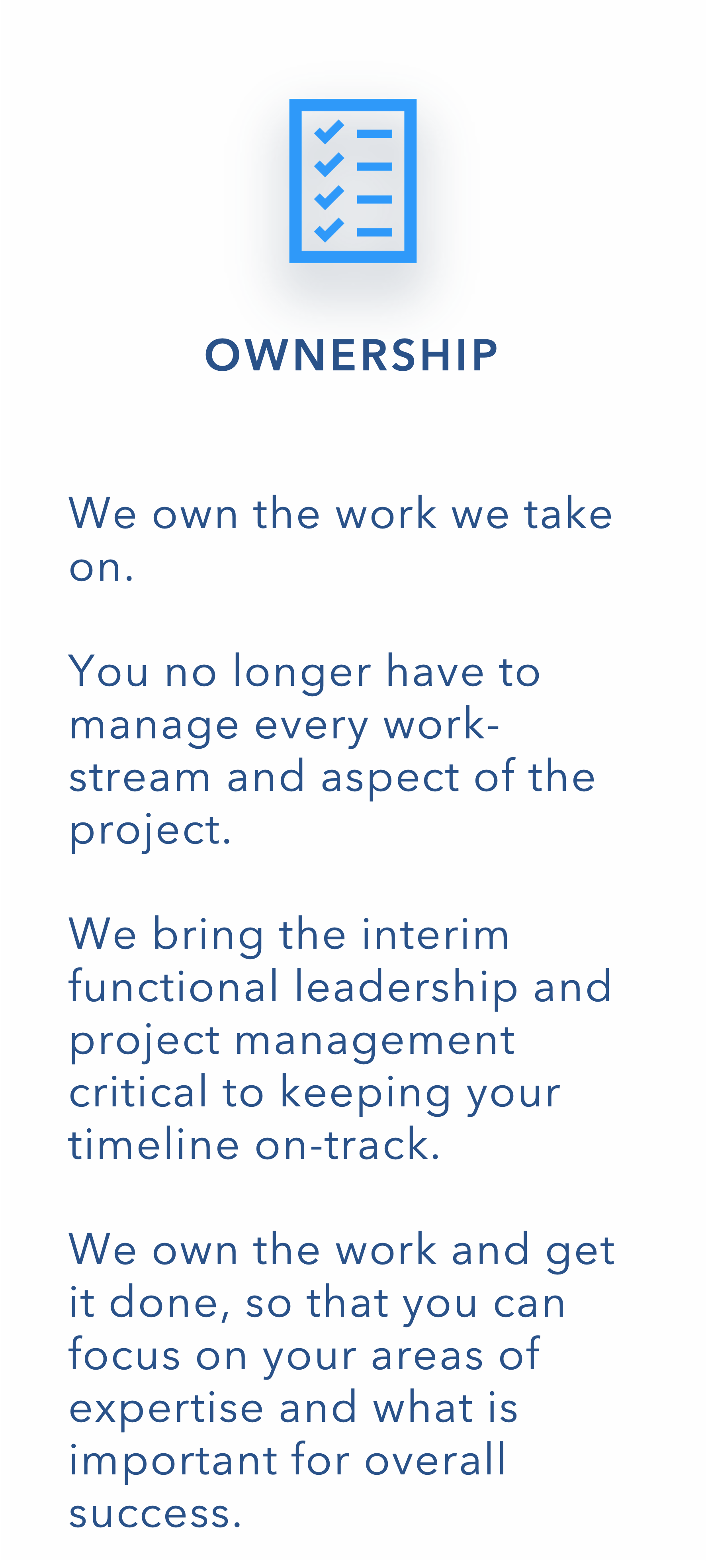 Our team fills in the gaps, partners with employees, and integrates the workstreams.